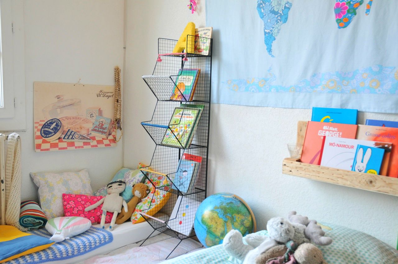 Très chouette ce coin déco! Chez moi, c’est des cagettes au sol, à côté des lits. Chacun sa préféré et il y a des échanges!
