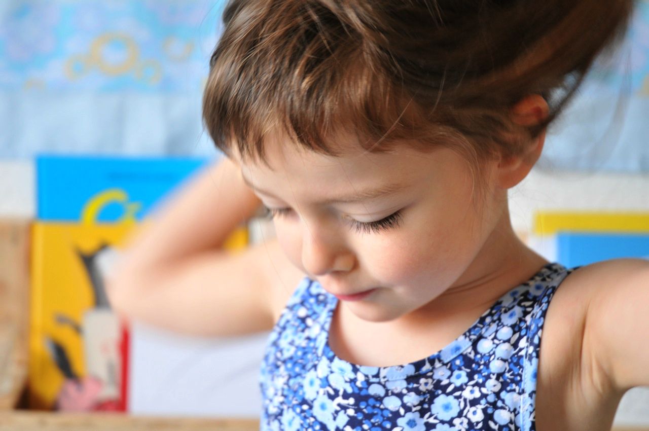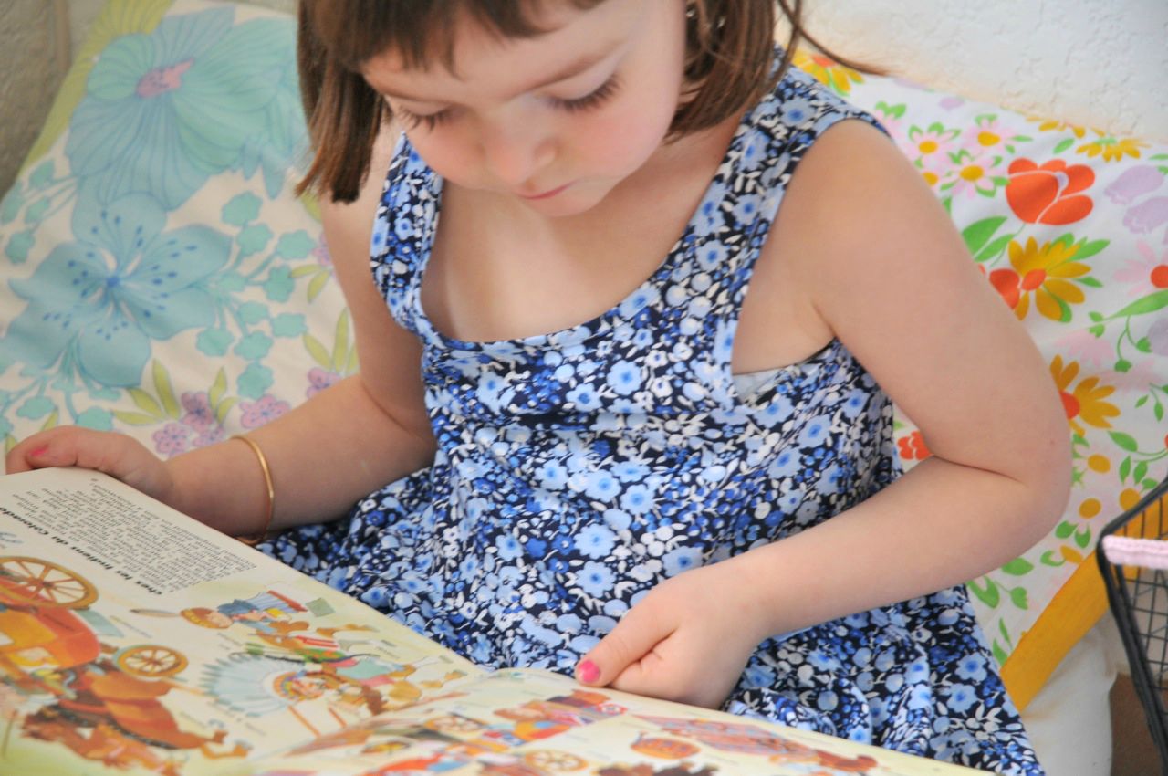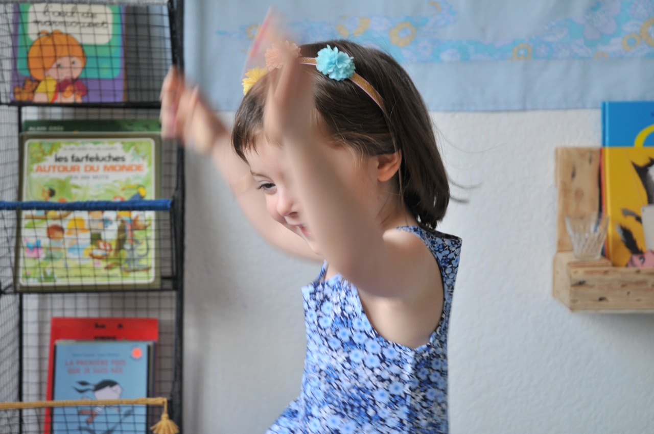 Elle passe un temps fou avec tous ses livres, il y en a encore sur l’étagère fabriquée par son papa et d’autres planqués dans le grand buffet.