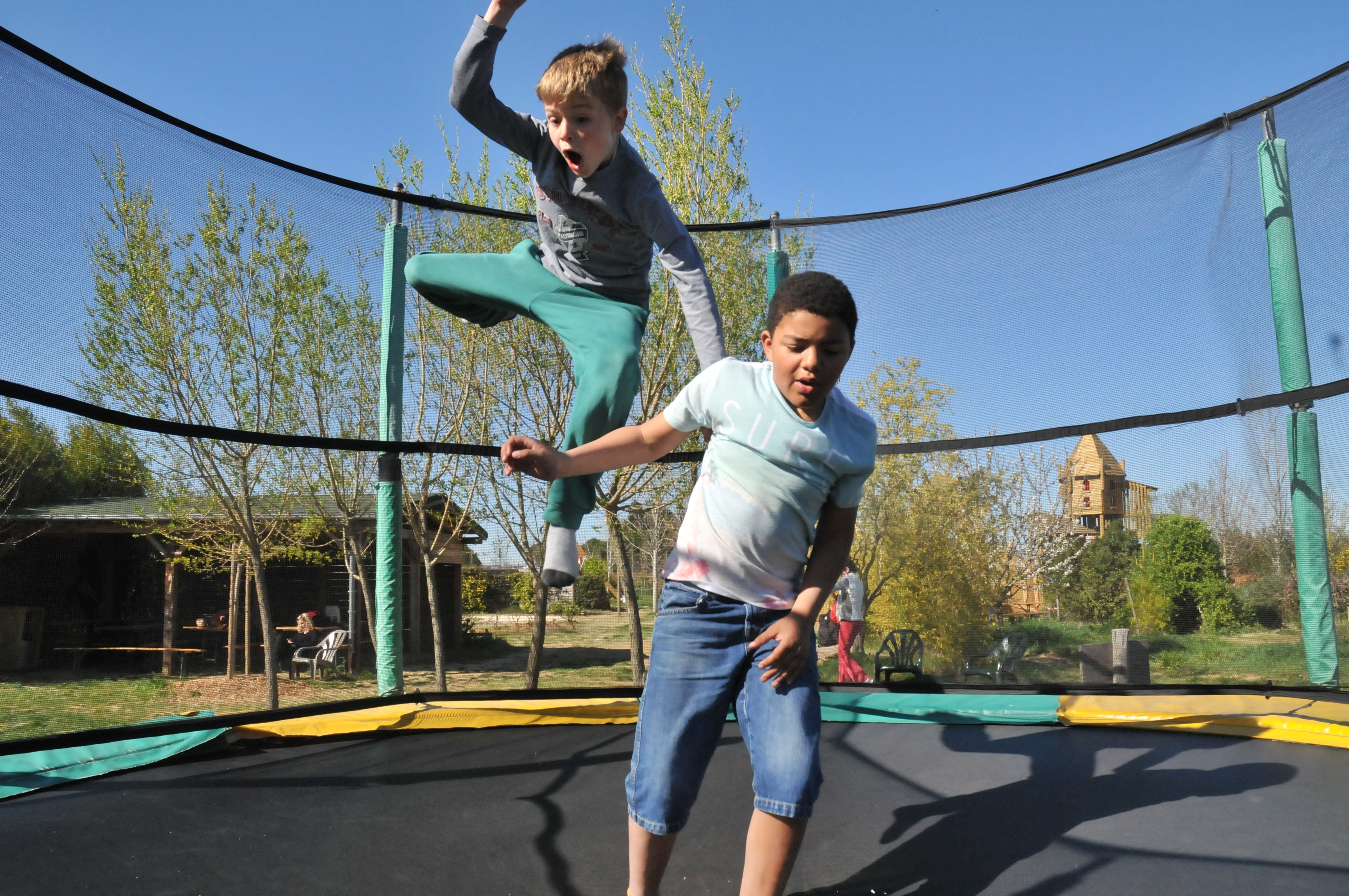 La ferme enchantée est un endroit immense et surtout clos où les petits vont et viennent en presque autonomie. Animaux à nourrir, trampolines, château en bois, aire de jeu d’eau et toboggan, bac à sable, coloriage, déguisements, dune gonflable, verger, potager, fleurs, hamacs, transat, table pour pique niquer ou salon de jardin pour boire un coup, chariot et carriole. Tout est superbement pensé, entretenu et rénové chaque année pour recevoir les familles.