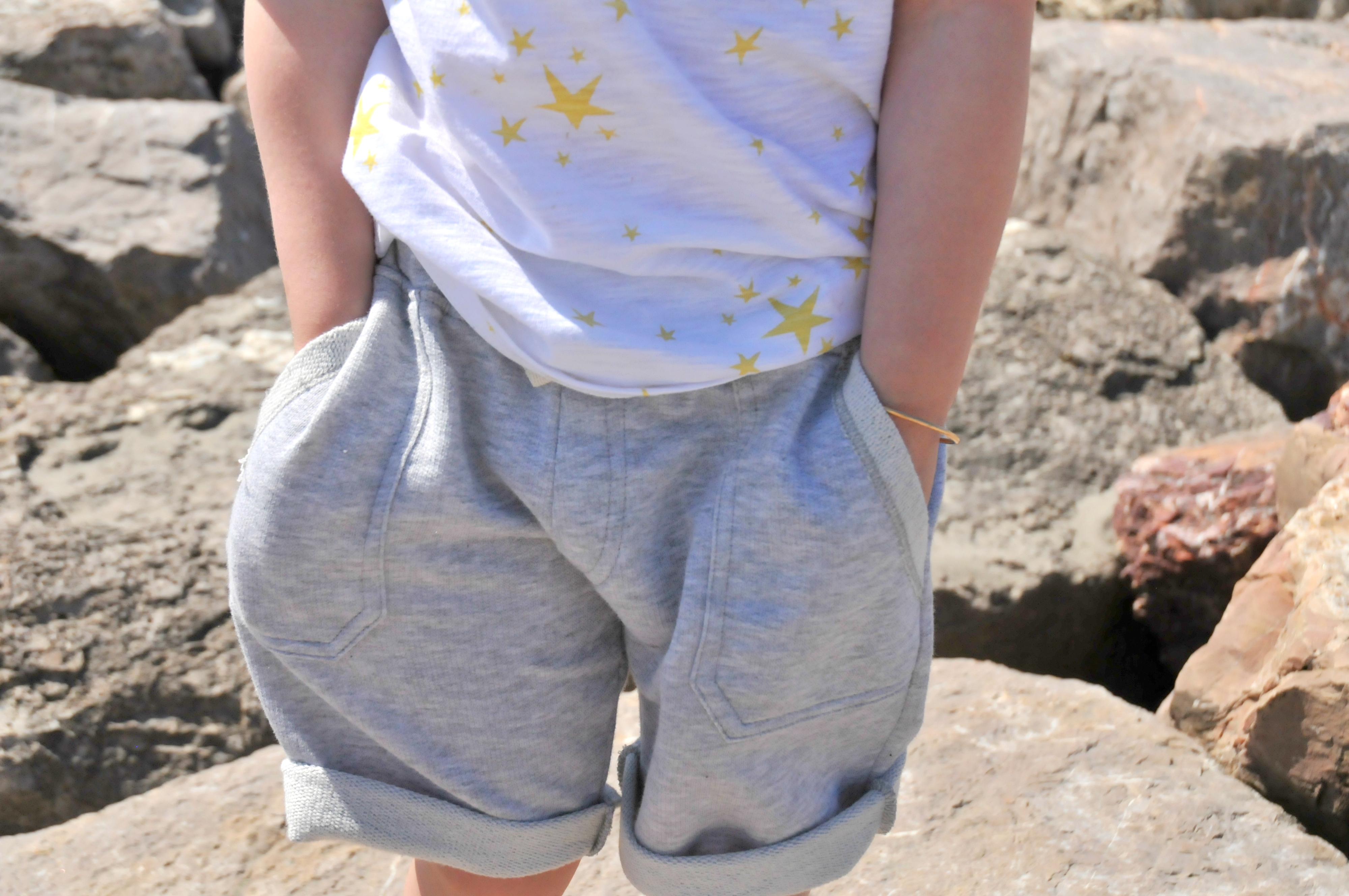 Violette porte un short et un tee shirt « Le marchand d’étoiles », une tenue pratique, toute douce en coton bio. Si vous ne connaissez encore, allez découvrir la boutique, c’est une découverte et pour moi qui suis une inconditionnelle du jersey pour les petits je n’ai pas été déçue!