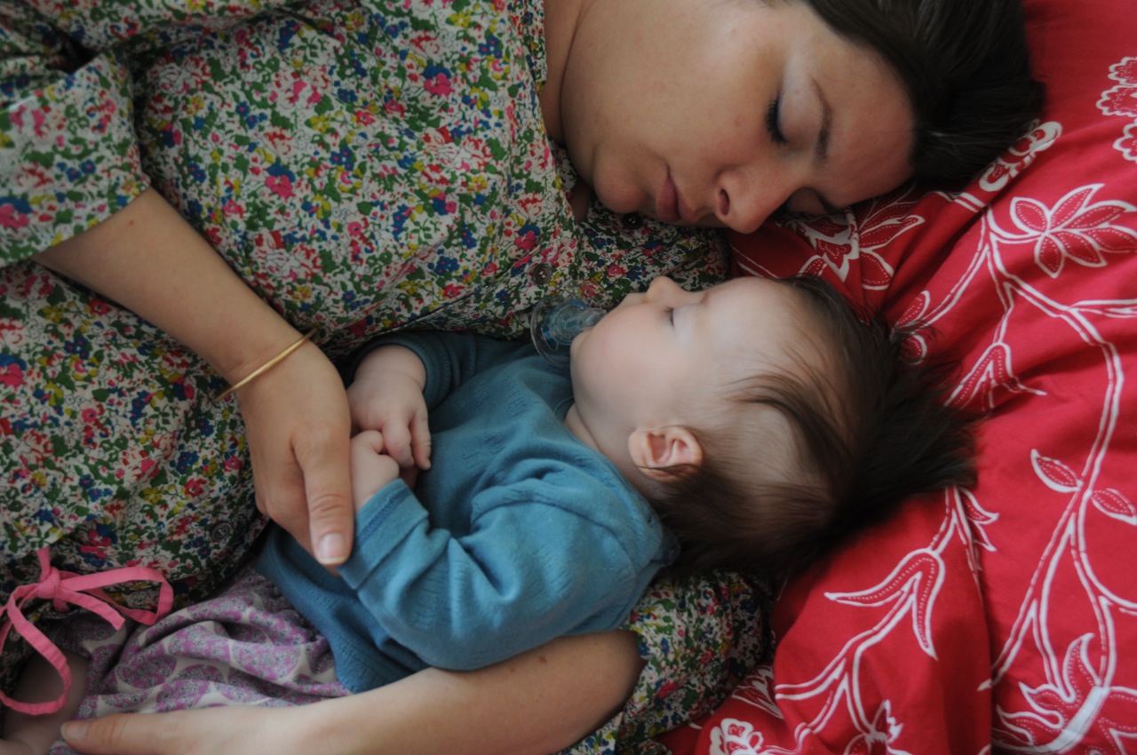 Photo bonus : un avant après et une autre de nous deux. Violette avait peut être trois semaines, je suis ronde comme un loukoum dans ma liquette fleurie, mais je me souviens comme hier de ces moments où mon bébé fleur à la coiffure incertaine s’endormait contre moi…