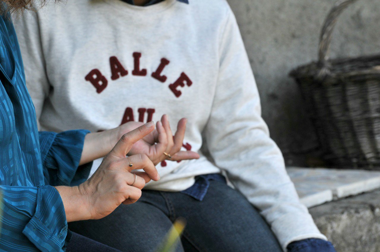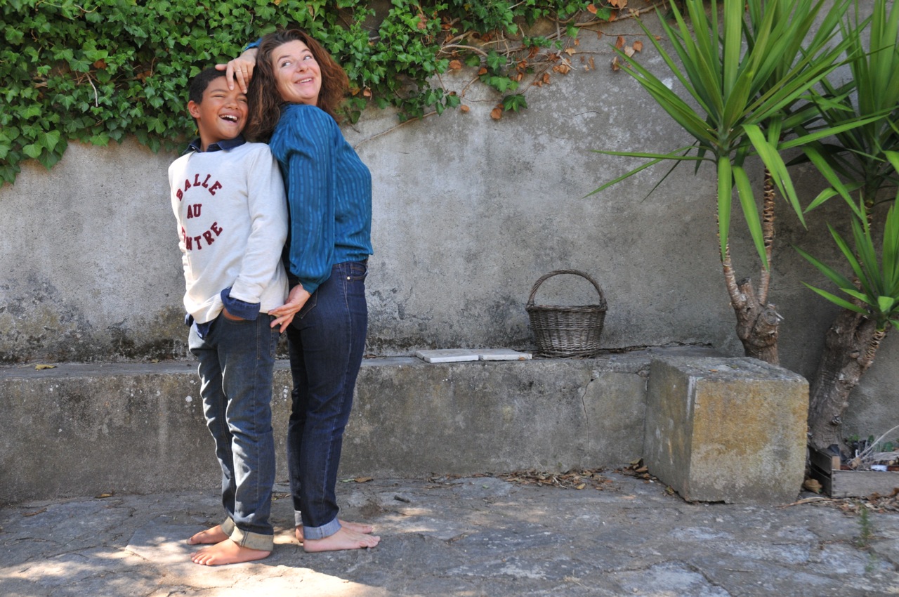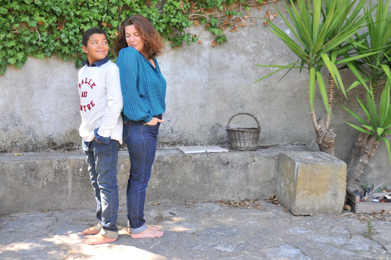 Nos looks : Sacha porte un jeans couleur Denim Vintage, une chemise en denim et un Sweat qu’il adore, chez Cyrillus donc. Je porte un jeans Chut Chut pas de marque, Une blouse Yves Saint Laurent vintage trouvée chez Emmaüs il y a longtemps. Et fièrement nos pieds sont nus !
