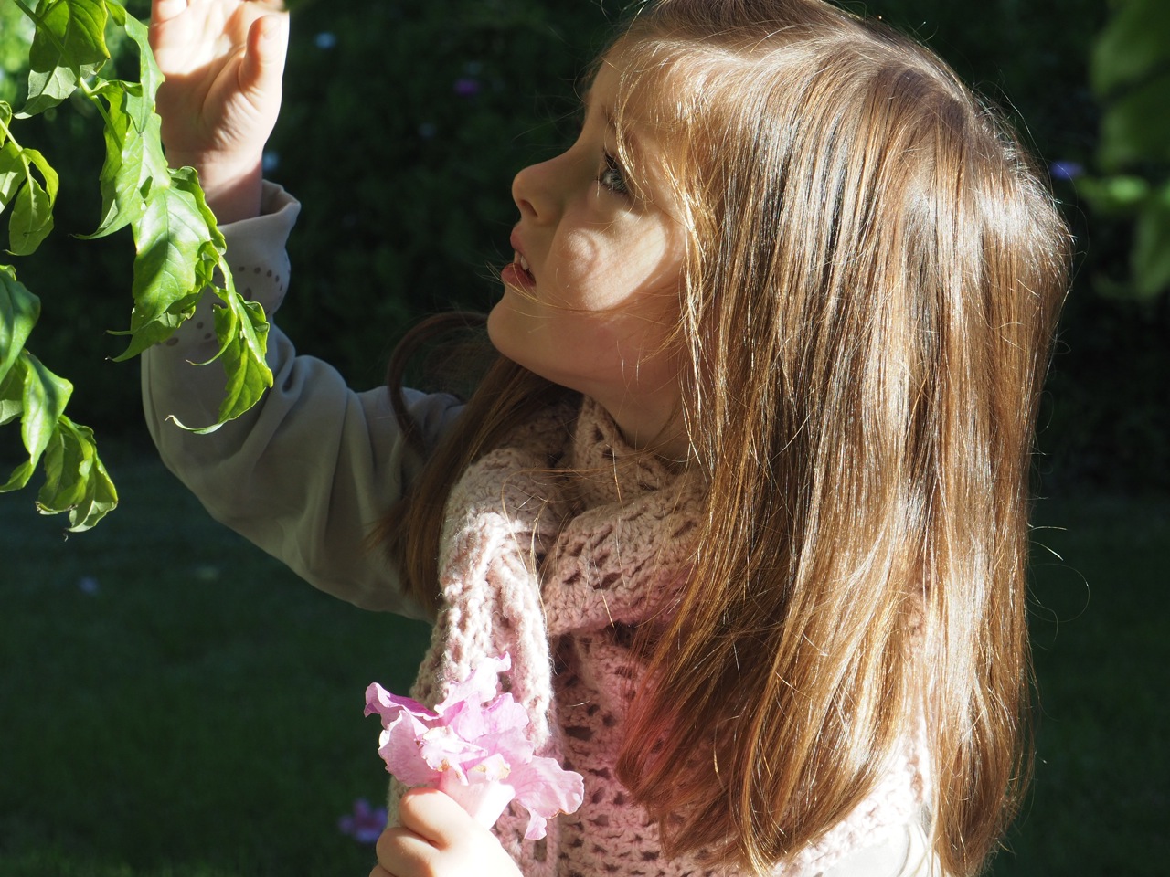 Elle cueille, elle mélange, elle se hisse sur la pointe des pieds. Elle fait toujours de fantastiques bouquets chez Ati. J’aime beaucoup cette série prise juste avant mon départ à Milan, cette lumière dans ses cheveux qu’elle ne veut jamais attacher, ces fleurs roses exubérantes et sa moue concentrée.