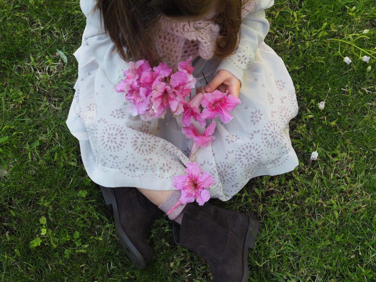La jolie marque Gocco a eu envie de collaborer avec nous pour cette tenue. Cette boutique espagnole est une véritable découverte pour moi. Une robe qui tourne choisie par Violette, des boots en daim de belle qualité choisies par moi pour faire valser le romantisme des dessins de dentelle. Parfois c’est un peu compliqué de tomber d’accord sur une tenue, c’est qu’elle a des gouts affirmés la petite ! Mais là aucun problème devant l’armoire vous vous doutez bien.