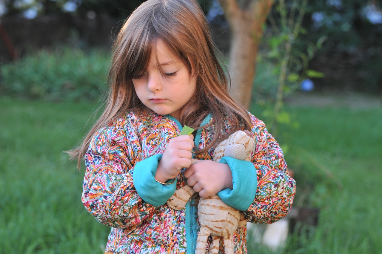 Nous avons aménagé dans notre nouvelle maison il y a 4 ans et demi, un mois avant la naissance de mon deuxième. Mon grand avait 2 ans à l’époque. Quand il est entré à l’école du village il s’est vraiment pris d’amitié pour la fille aîné de ma voisine qui le chouchoutait …. Puis un peu après ses quatre ans le papa de cette fille est décédé brutalement , ça a été un choc, il laissait sa femme et ses filles de 7 et 9 ans.,nous le croisions tous les matins en allant à l’école un grand sourire aux lèvres, c’était vraiment le genre de personne pour qui on éprouve de la sympathie en deux secondes. Après ça mon grand a beaucoup beaucoup parlé de la mort, il s’inquiétait toujours de savoir si notre voisine était bien présente pour s’occuper de ses filles, je sais que ça l’a marqué , il a beaucoup parlé de la mort pendant un moment et puis maintenant , il a 6 ans et c’est un peu passé. Certains enfants sont très sensibles , je me souviens de plein de réflexions de mon aîné qui m’ont montrées combien il était sensible à nos états d’âme.C’est comme ça, un peu déroutant des fois, mais il faut expliquer, parfois un peu enjoliver » mais noooon on va pas mourir on n’est pas malades » . Je pense que c’est un passage pour Violette, ça passera…