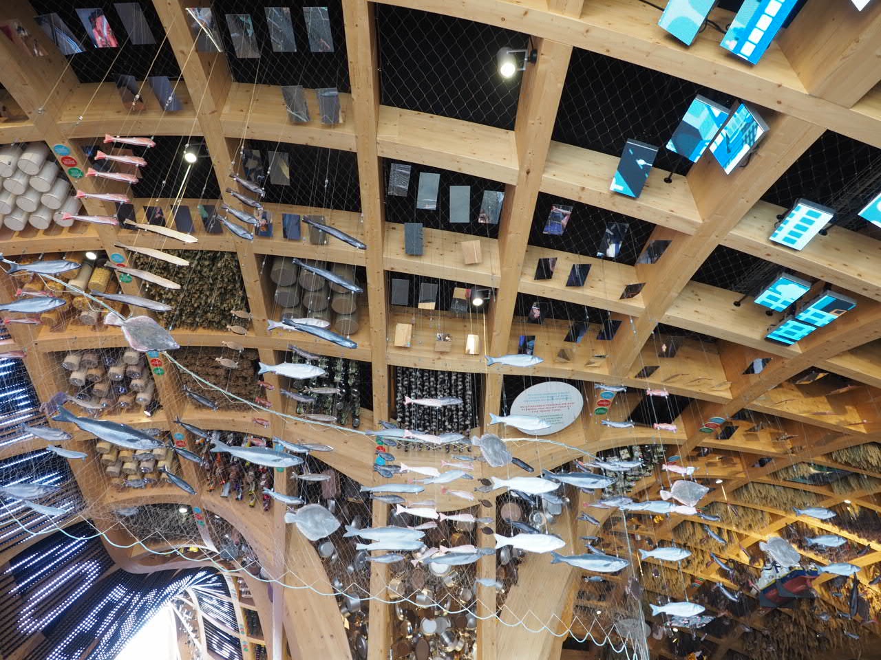 On a gardé notre œil aiguisé en se demandant ce que toutes ces marques venaient faire là ? Le géant de la pâte à tartiner et ses deux ou trois gros pavillons, prêt à couvrir le monde de noisettes chocolatées… Le pavillon français et sa pub géante pour une marque de yaourt au Soja. Non ça vraiment c’était pas obligé. On en a pas mal parlé avec mon grand, on est envahit par la pub certes, à nous de prendre ce qu’il y a à prendre et de laisser le reste.