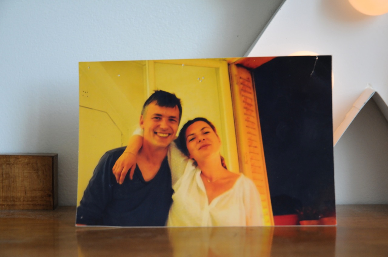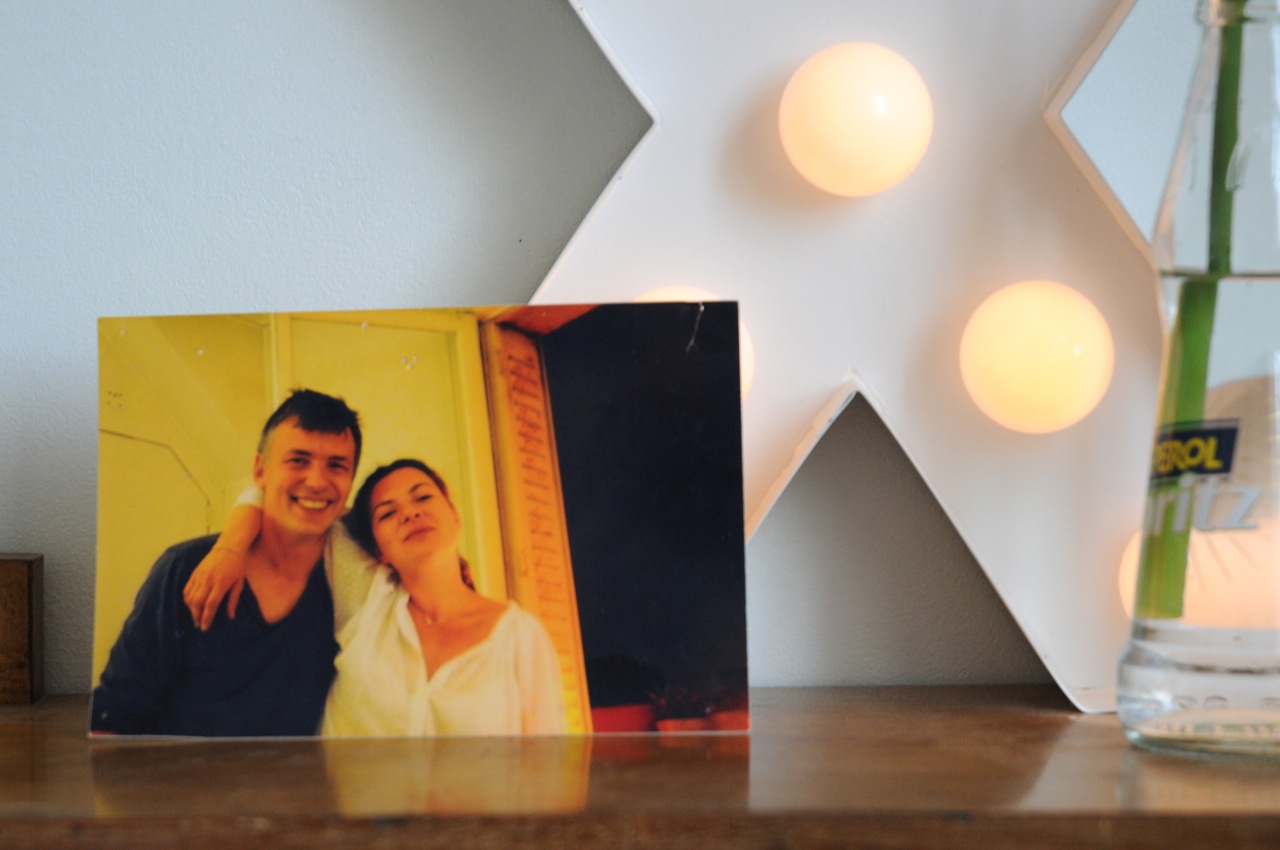 Violette dort avec cette photo depuis quelques semaines. Elle est toute jaune et on a l’air de deux amoureux un peu niais mais elle adore cette image de nous deux.