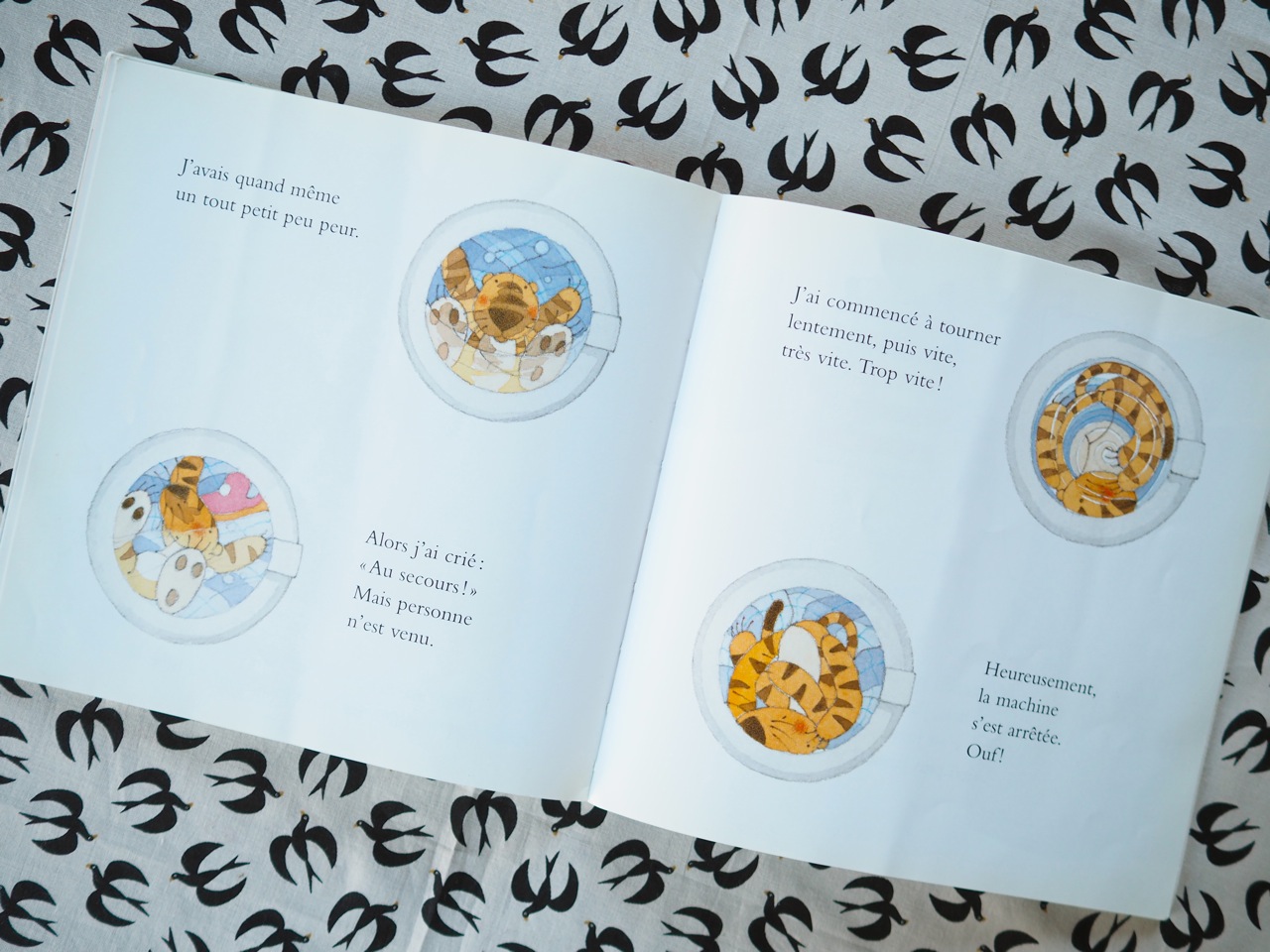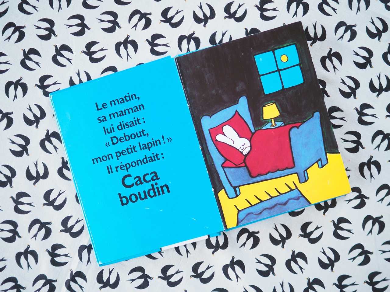 Je crois avoir entendu « Caca boudin » des centaines et des centaines de fois. Ces deux mots ont raisonnés dans la bouche de mes deux enfants alors qu’ils parlaient à peine. Certaines pages sont déchirées de nos fous rire, il est vieux et tout cabossé mais nous l’aimons d’amour! Je leur relis souvent, l’histoire est courte et drôlissime, il fait partie des livres que nous emmenons partout, juste pour rigoler un coup au parc, dans le train, en avion ou au resto.