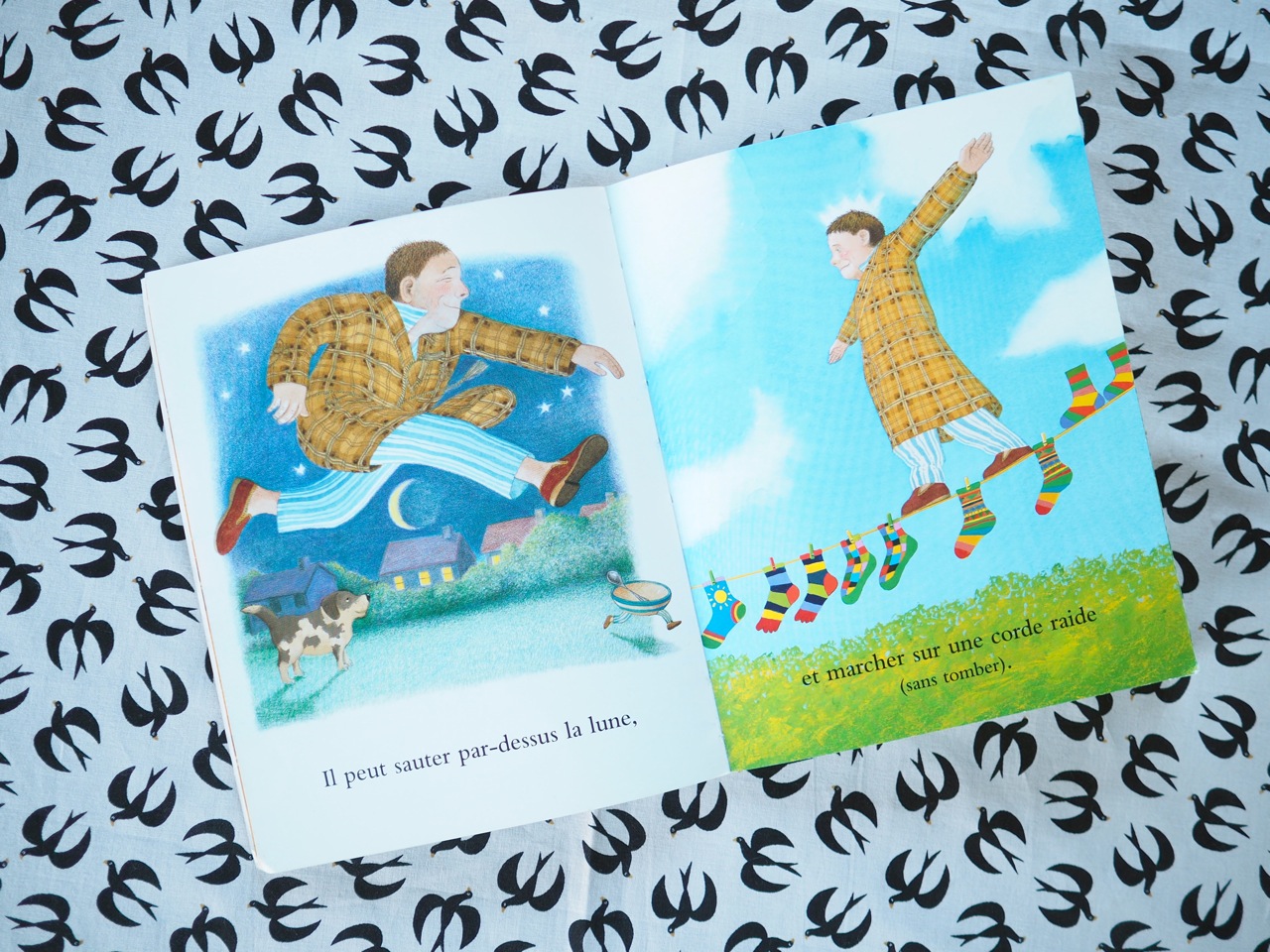 Ces deux livres sont nos refuges. Les papas de mes enfants ne sont pas toujours avec nous, et le manque d’eux est pour moi toujours difficile à pallier. Quand un papa manque à l’un des petits je demande « Tu veux qu’on lise Mon Papa? ». C’est toujours oui! Mais il faut lire aussi « Ma maman », l’un n’étant jamais dissociable de l’autre. Ils sont notre moyen à nous de nous retrouver même loin. J’aime ces livres pardessus tout. Et j’aime savoir qu’ils sont là pour mes enfants.