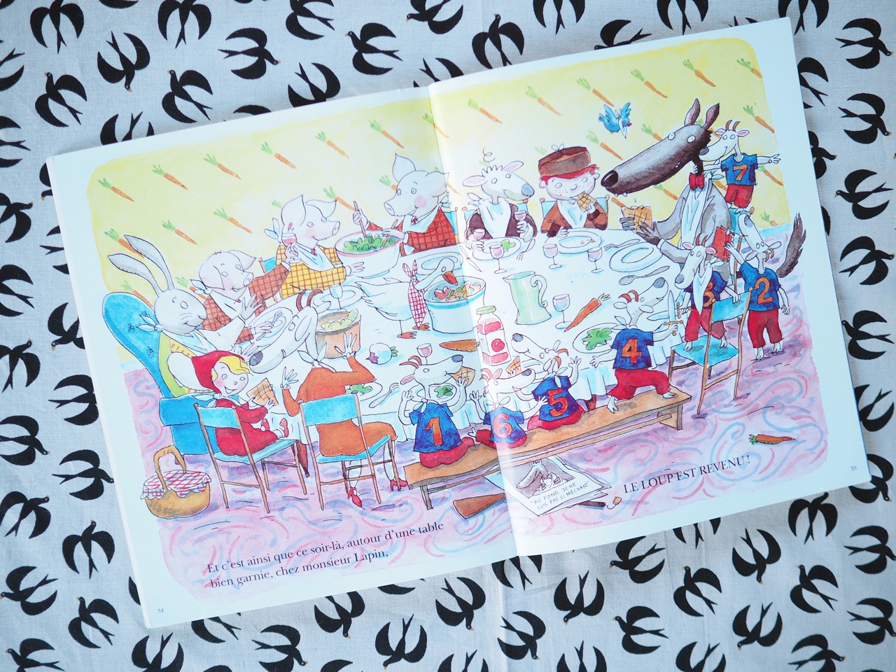 Lorsque Sacha s’est aperçu que Pierre se cachait dans toutes les images, il a eu comme une révélation. J’avais dû lire cette histoire des dizaines et des dizaines de fois et puis un jour l’illumination. C’est ça aussi que j’aime dans les livres, ces détails que l’on ne voit que bien plus tard, une découverte à chaque âge. Et puis ce loup tellement sentimental nous a aidé à comprendre que parfois il ne fallait pas se fier à ce que l’on raconte. Les loups ne font pas toujours peur n’est ce pas?