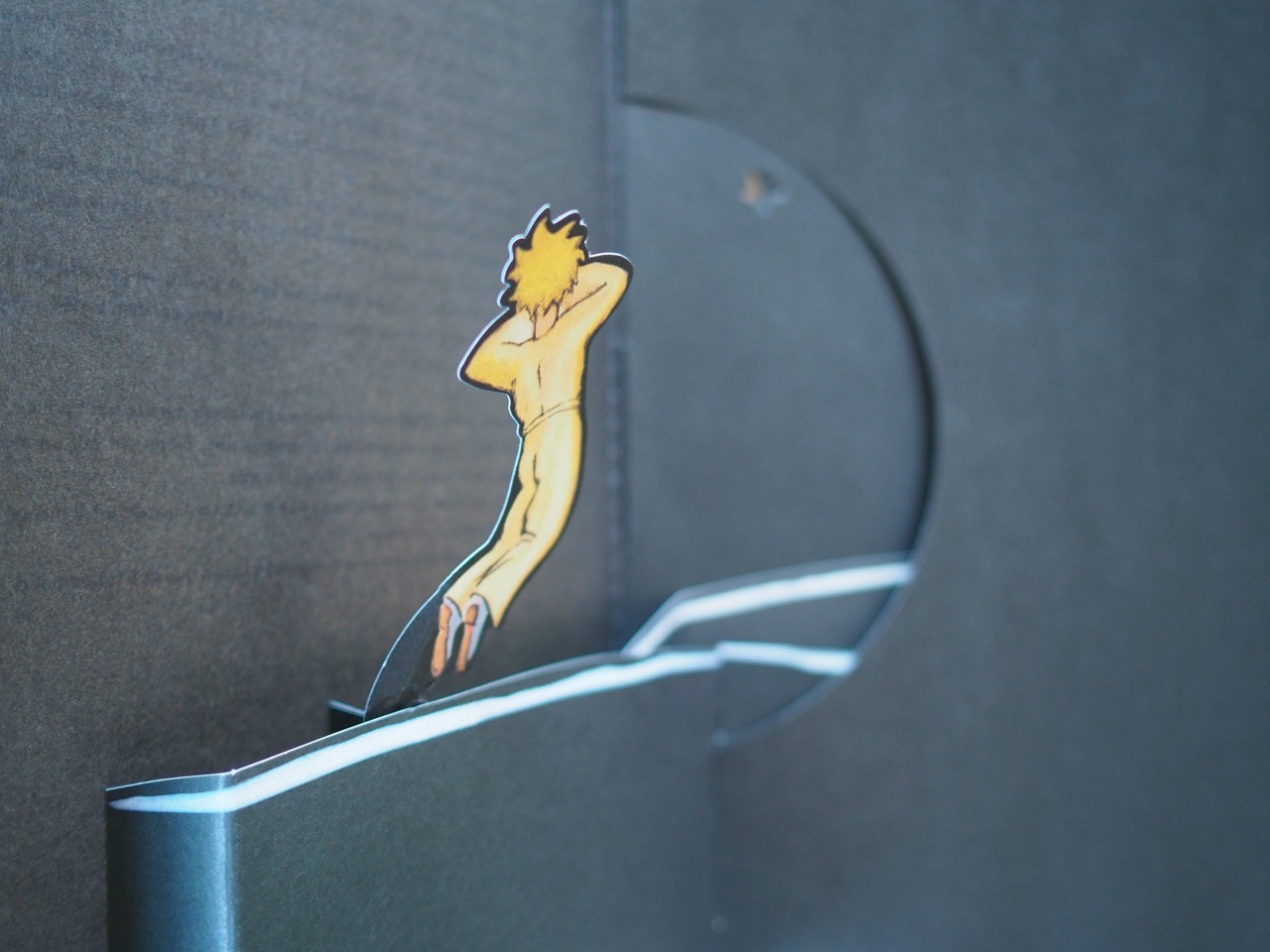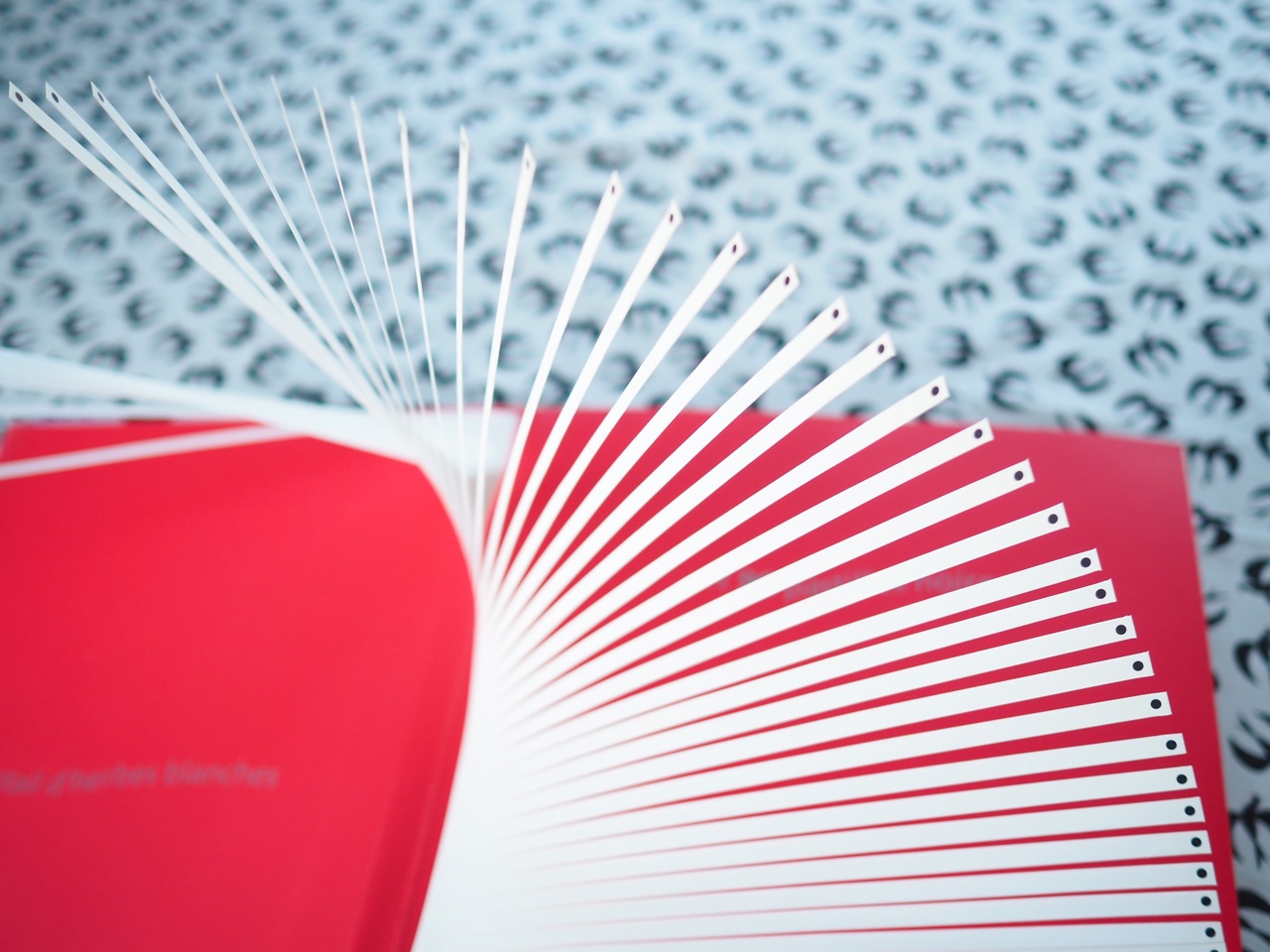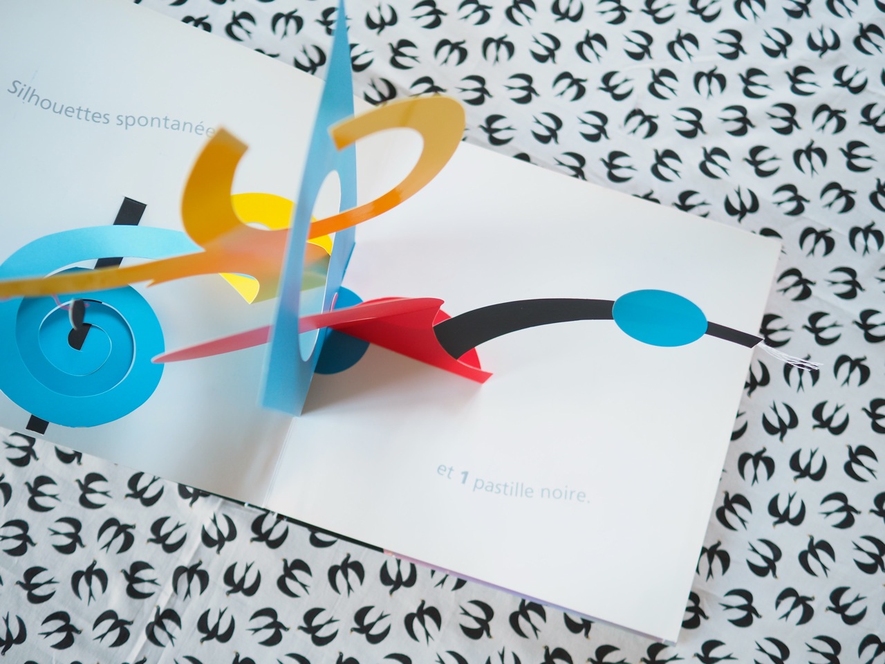 Ce livre est une véritable chef d’oeuvre. Sacha l’a reçu lorsqu’il était tout petit et je crois bien que ce sont ces pages qui l’ont fait rentrer dans l’art. Nous avons compté et recompté les pastilles noires, cherché celles qui étaient cachées, et bien sur Violette a pris la suite. La couverture est très abîmée à force d’avoir été manipulée mais étonnement les pages pop up ont conservé toute leur splendeur. Ce livre, nous le feuilletons régulièrement et il est toujours accessible pour les petites mains.