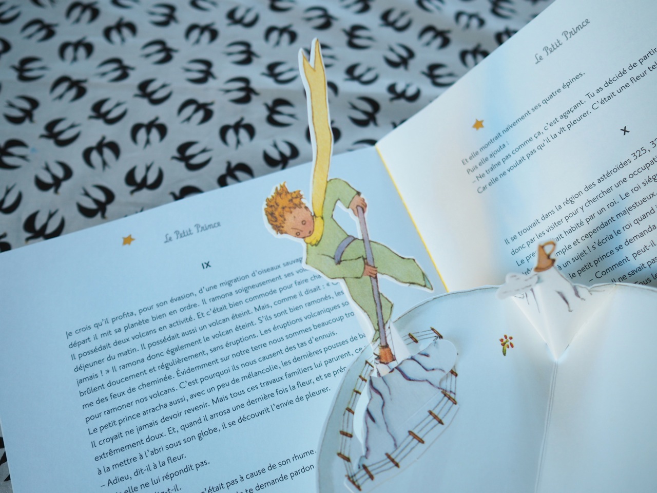 J’ai offert ce livre à Sacha alors qu’il avait 4 ans. J’avais très envie de lui lire Le petit prince. C’était notre rituel à nous, quelques pages par soir avant de s’endormir. Ce livre est magique, on entre littéralement dans l’histoire, le petit prince s’anime, sort du livre pour nous effleurer du doigt. Toucher l’histoire pour qu’elle nous touche au fond du coeur. Mon grand le relis souvent, et le lit à sa soeur. C’est un cadeau qui a un certain prix, mais pour nous c’est un livre à avoir dans une bibliothèque. Pour la vie.