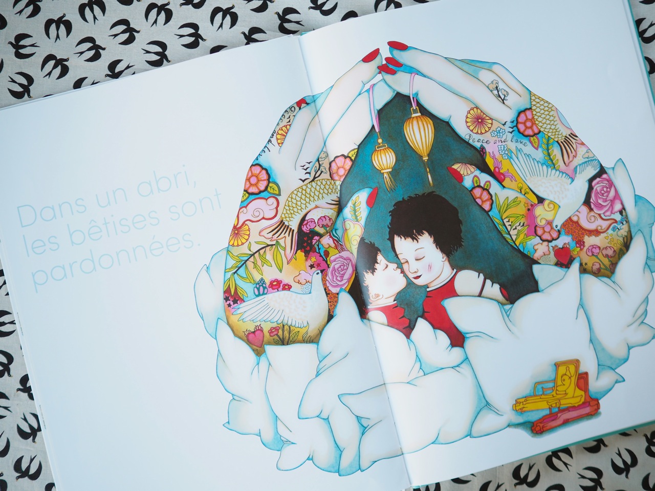 Ce livre je vous en ai parlé en détail ici. C’est mon coup de coeur de ces derniers mois. C’est un livre qui résonne en nous très fort. J’essaie de faire de leurs vies des cocons, je m’évertue à les entourer au mieux pour qu’ils trouvent plus tard comment fabriquer leurs propres abris. Il y a dans ce livre quelques chose qui nous émeut tous ici. Lorsque je le raconte, nous sommes toujours biens serrés les uns contre les autres, je murmure et ma voix chevrote un peu. Ce livre c’est nous. Il me donne des frissons.