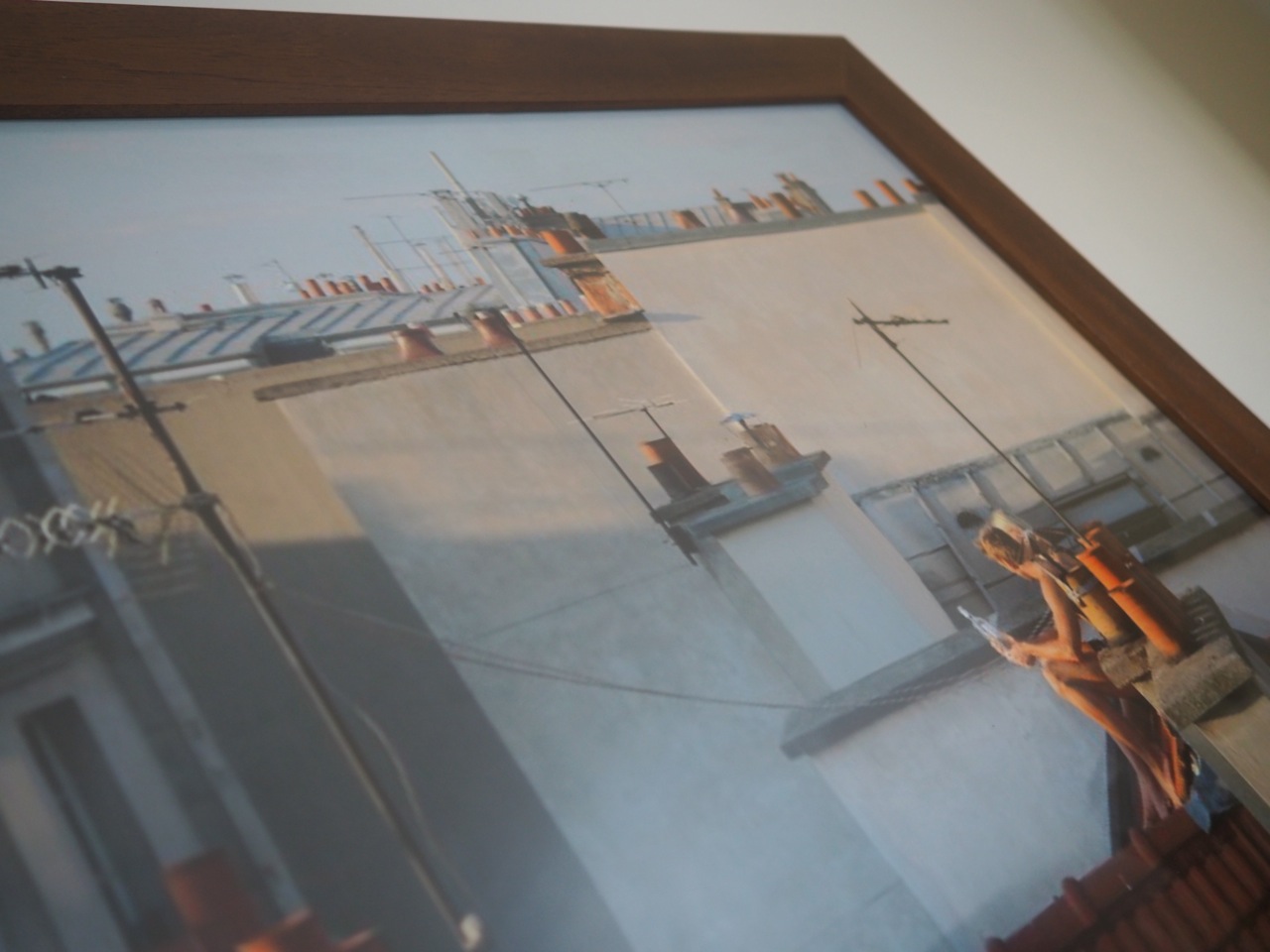 Cette photo agrandie dans notre chambre du midi c’est notre fenêtre sur Paris. Un souvenir des toits et de la vue que nous avions de chez nous. L’avoir près de nous est doux et symbolique, comme si l’on ne voulait pas oublier ces briques et ces tuiles, la lumière si particulière des après midi d’été. Paris reste en chacun de nous quatre. Notre ancien appartement a vu naître notre petite, grandir notre famille, de lui il nous reste les souvenirs heureux et cette vue du sixième étage maintenant.