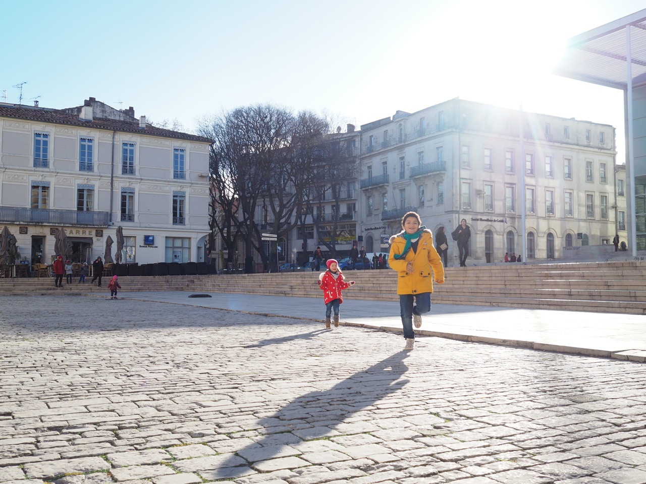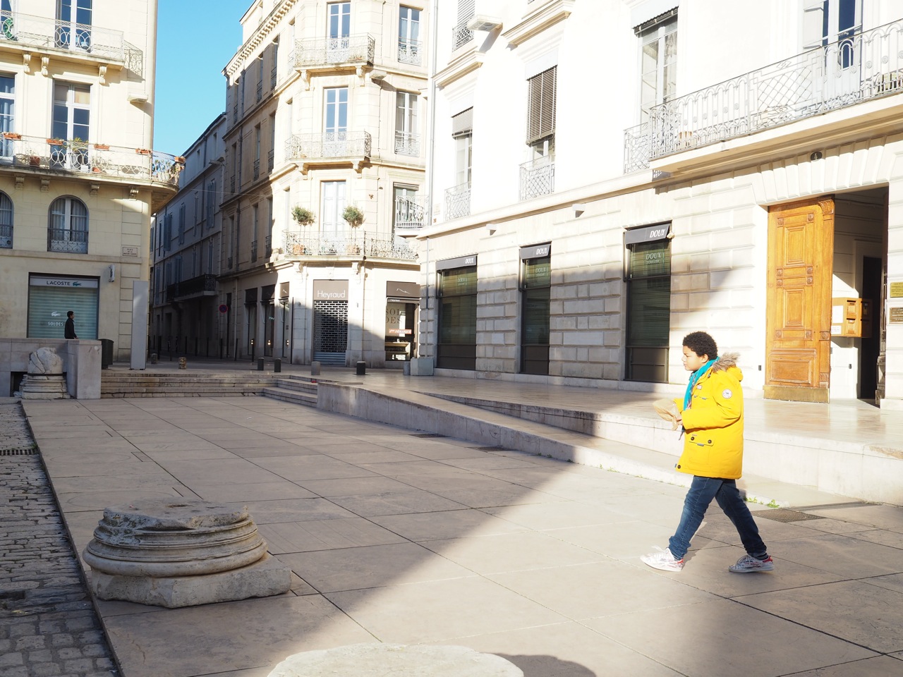 Elle est superbe cette lumière d’hiver. Et il n’y a vraiment pas grand monde dans les rues de Nîmes le dimanche!