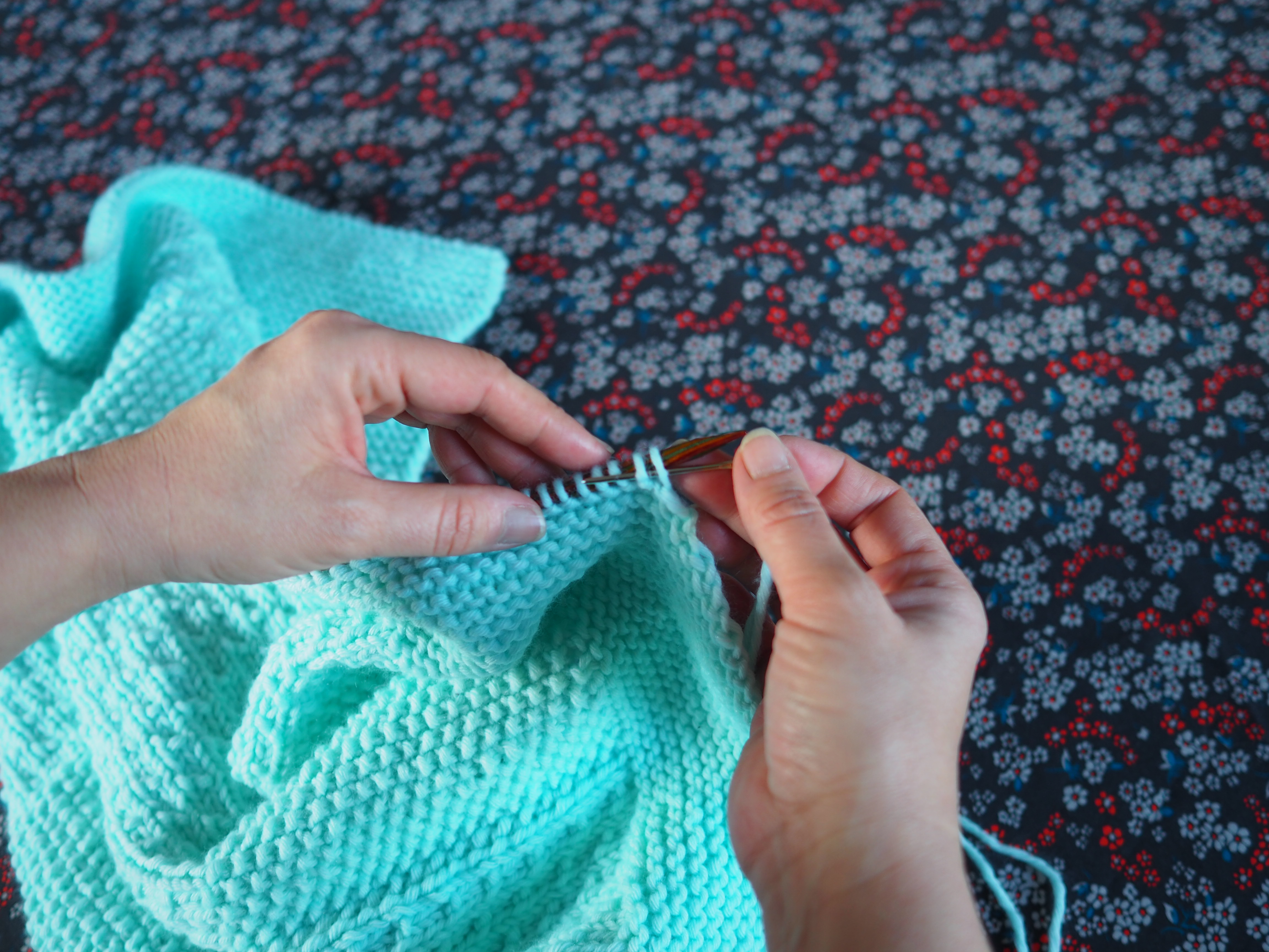 Ce qui est étrange, c’est qu’en lisant tes explications pour tricoter cette couverture, j’ai ressenti un apaisement. Moi qui ai toujours pensé que je n’avais pas le temps de tricoter, je me dis que justement, je devrais peut-être prendre le temps d’apprendre. Cela me ferait sans doute du bien de me poser un peu. Et avec tes explications bienveillantes, j’y arriverais peut-être.