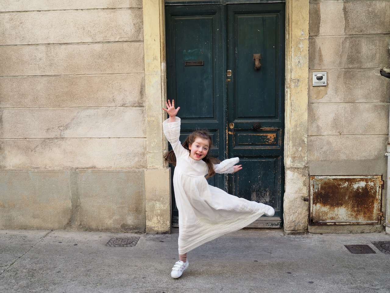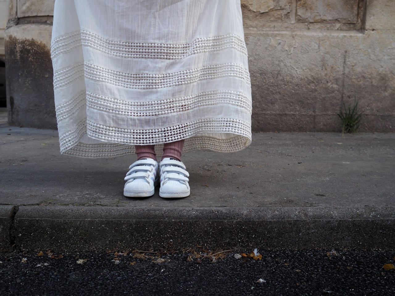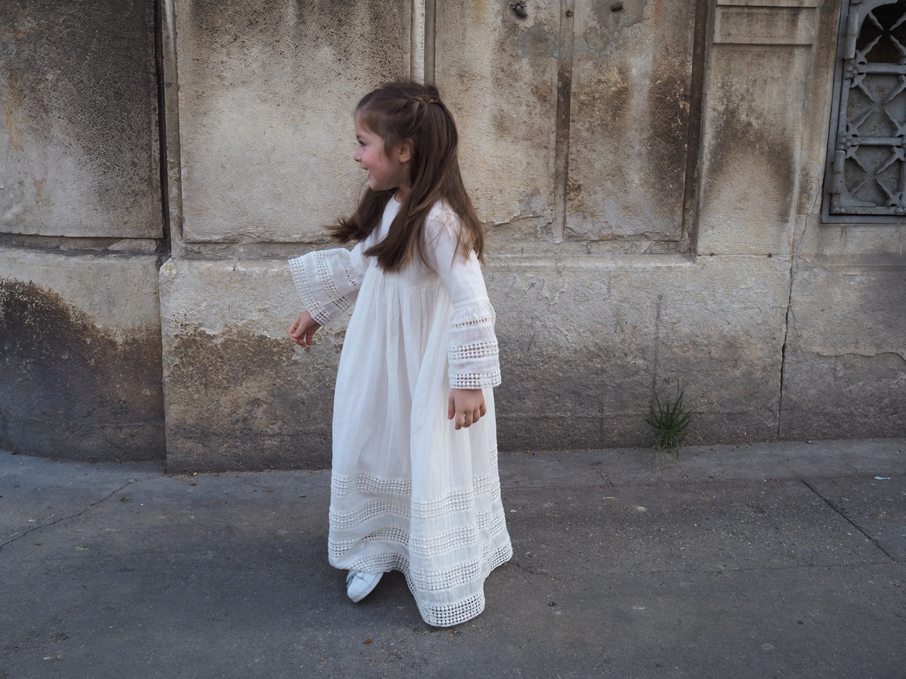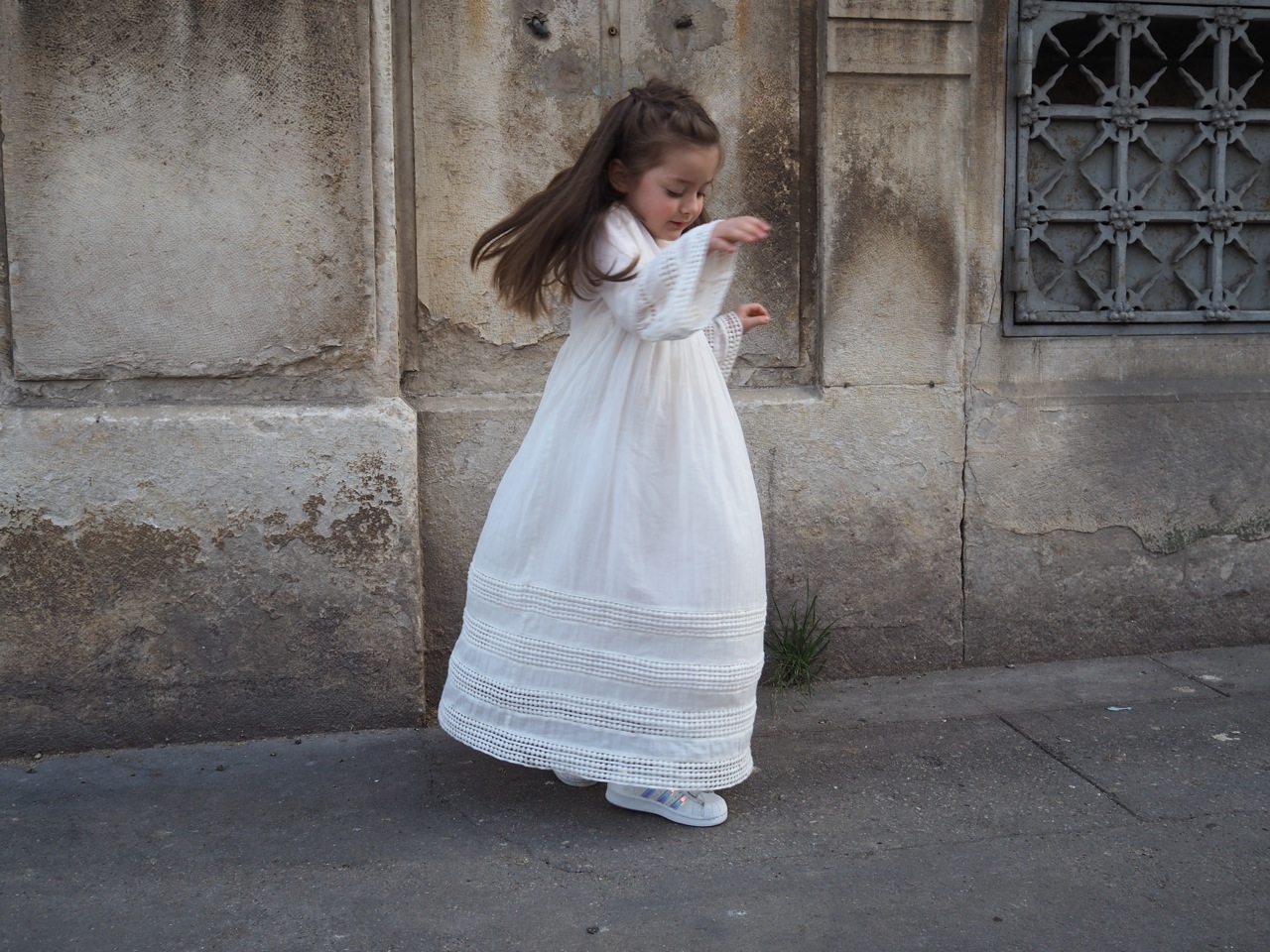 Ma petite perle en robe longue et en basket. Ma rieuse qui commence à comprendre l’humour et la dérision que nous aimons pratiquer dans notre famille.