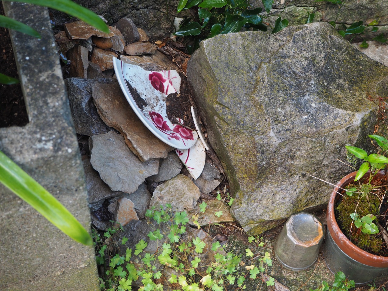 Dans mon jardin il y a tout ce que je vois. Une assiette du mariage, cassée mais que je ne veux pas jeter, des tomates en grappes, toutes petites et pourtant prometteuses. Un massif piquant de cactus dont je ne connais pas le nom. Des toiles d’araignées cachées entre les pousses et des escargots en forme de coquillage.