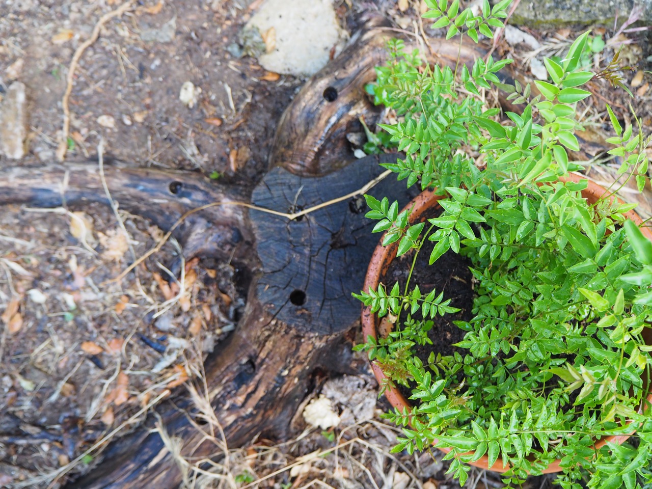 Les jouets des enfants qui trainent, la cendre des branches brulées et qu’il faut vider, les feuilles qui se transforment en terre dans le compost et le laurier rose taillé n’importe comment. Il y a les petits radis tous ronds et les fraises biscornues, les abeilles, précieuses et discrètes. Cette souche d’un arbre que l’on a pas connu et les fantômes de ses racines qui nous font parfois trébucher.