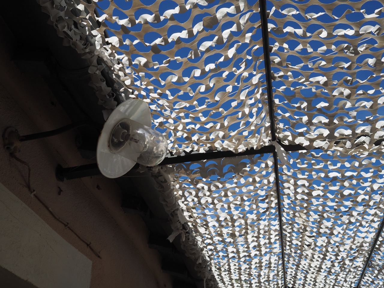 Chez moi le soleil cogne fort, alors on aime la mi ombre de notre toile de camouflage, chez moi les sarments de vigne vierge se transforment en bois pour le barbecue…