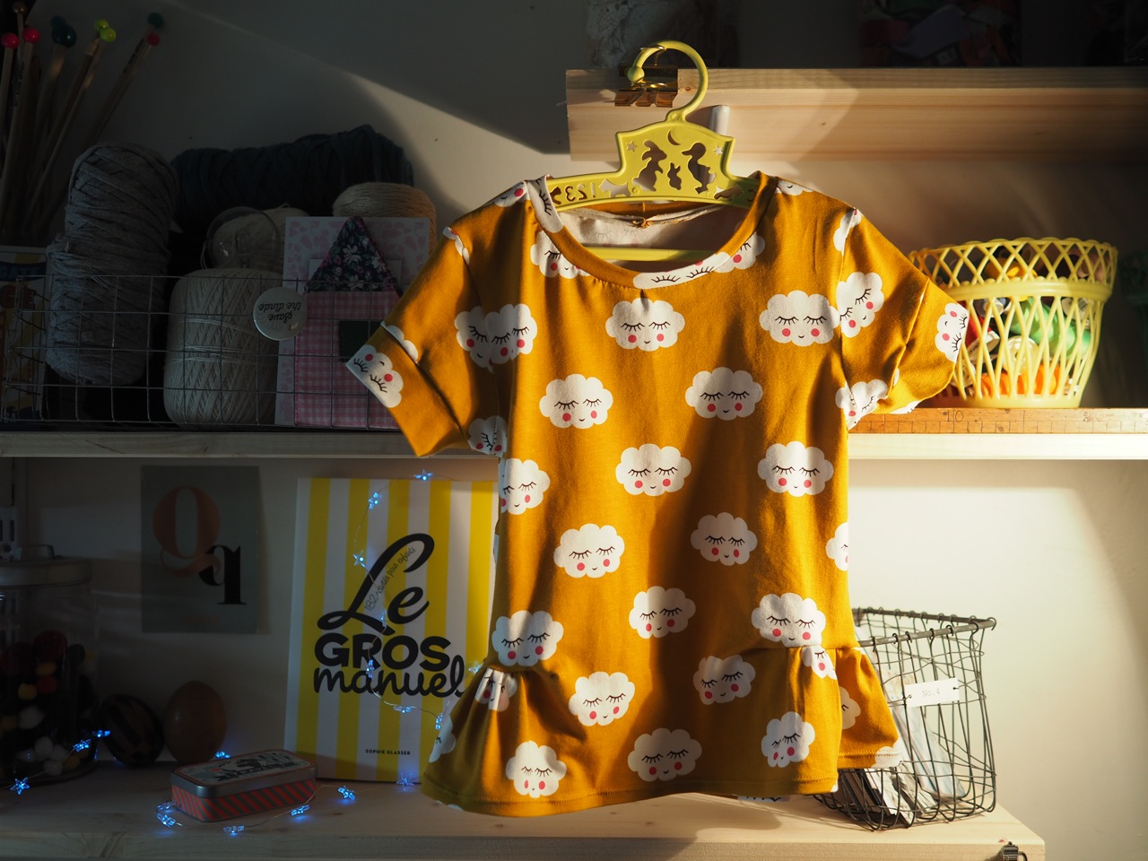 J’ignore ce que c’est qu’un ourlet double mais ce petit haut est vraiment trop mimi! Et le tissu, ah là là, le tissu!