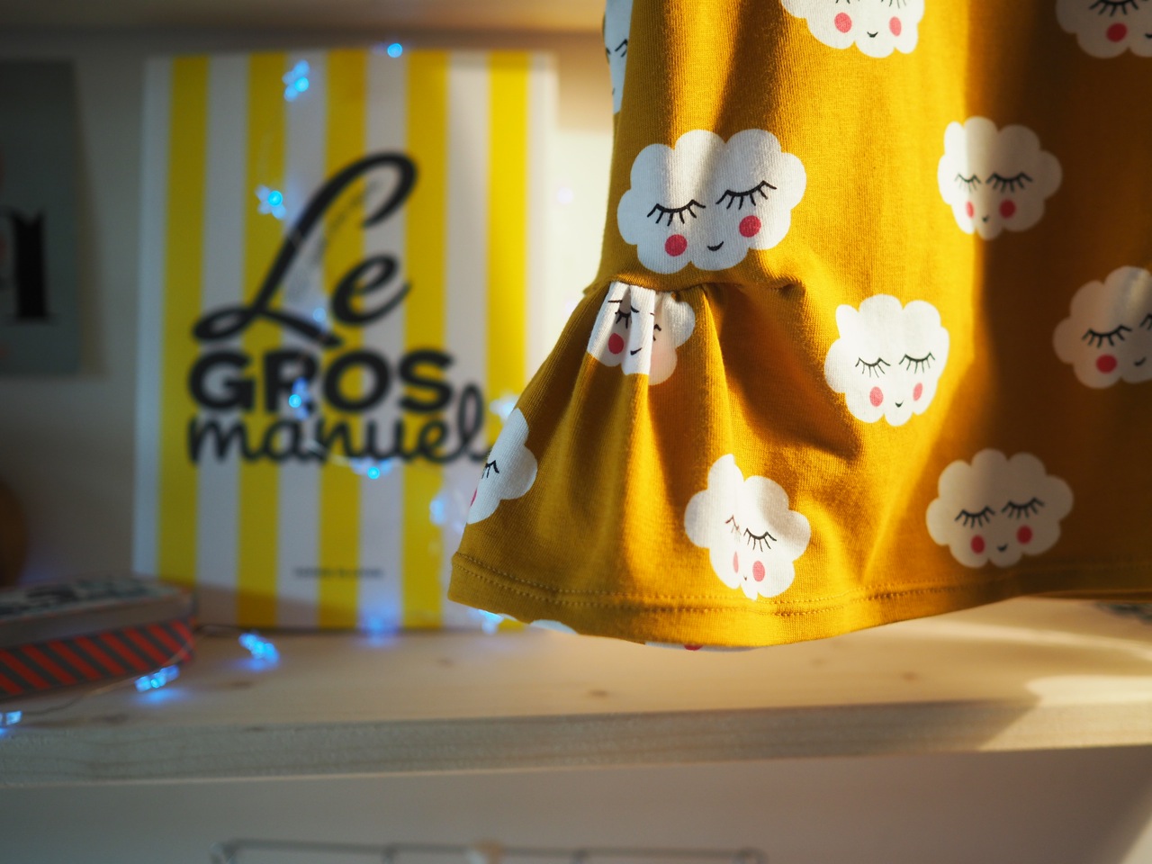 Ce modèle est sans doute en passe de devenir une de mes chouchous pour la demie saison. Un pour moi et un pour elle, avec ce qu’il faut de volant au bon endroit. Je vous reparlerai sans doute aussi de cette vidéo chez Artésane qui m’a bien aidé pour me donner de l’élan. Elle est forte Marie pour décomplexer!