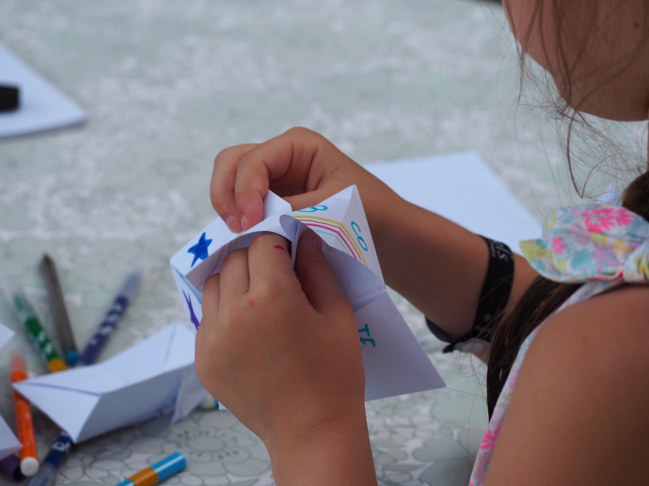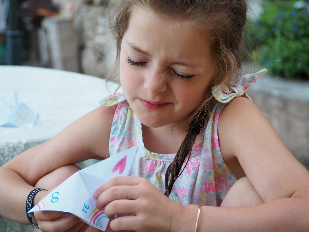 C’est chouette une enfant, la première fois qu’elle arrive à fabriquer une cocotte. C’est beau à voir cette candeur, ce sourire d’exploit.