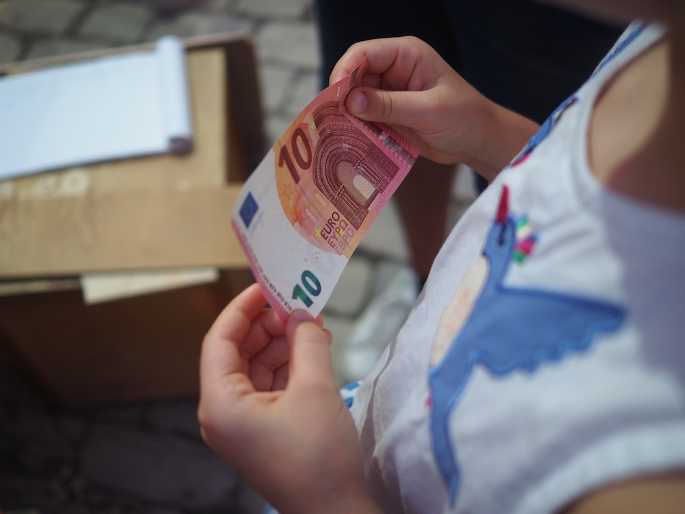 Qu’elle est jolie cette petite madame avec son billet de 10 dans les mains !