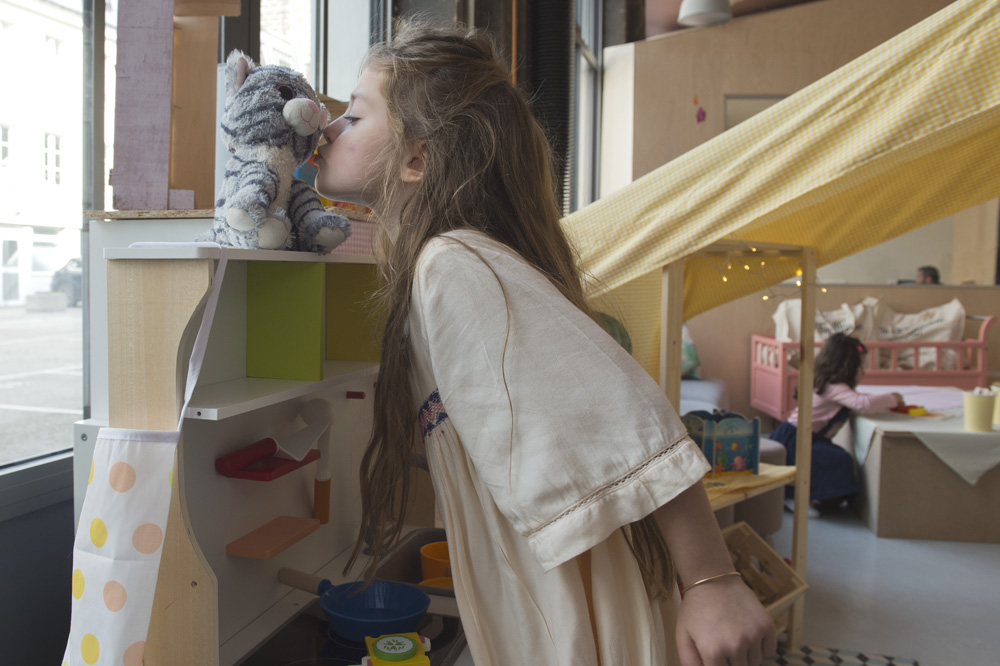 Violette a passé un super moment dans ce bel endroit, ces jouets et ces figurines sont justes parfaits pour elle qui aime s’inventer des mondes et des histoires. Une fois rentrée à la maison elle y a installé ses playmos, fabriqué une déco de papier et collé du parquet glitter. C’est pile ce que je recherche pour elle, des jouets qui laissent libre court à sa petite vie, qui n’imposent rien.