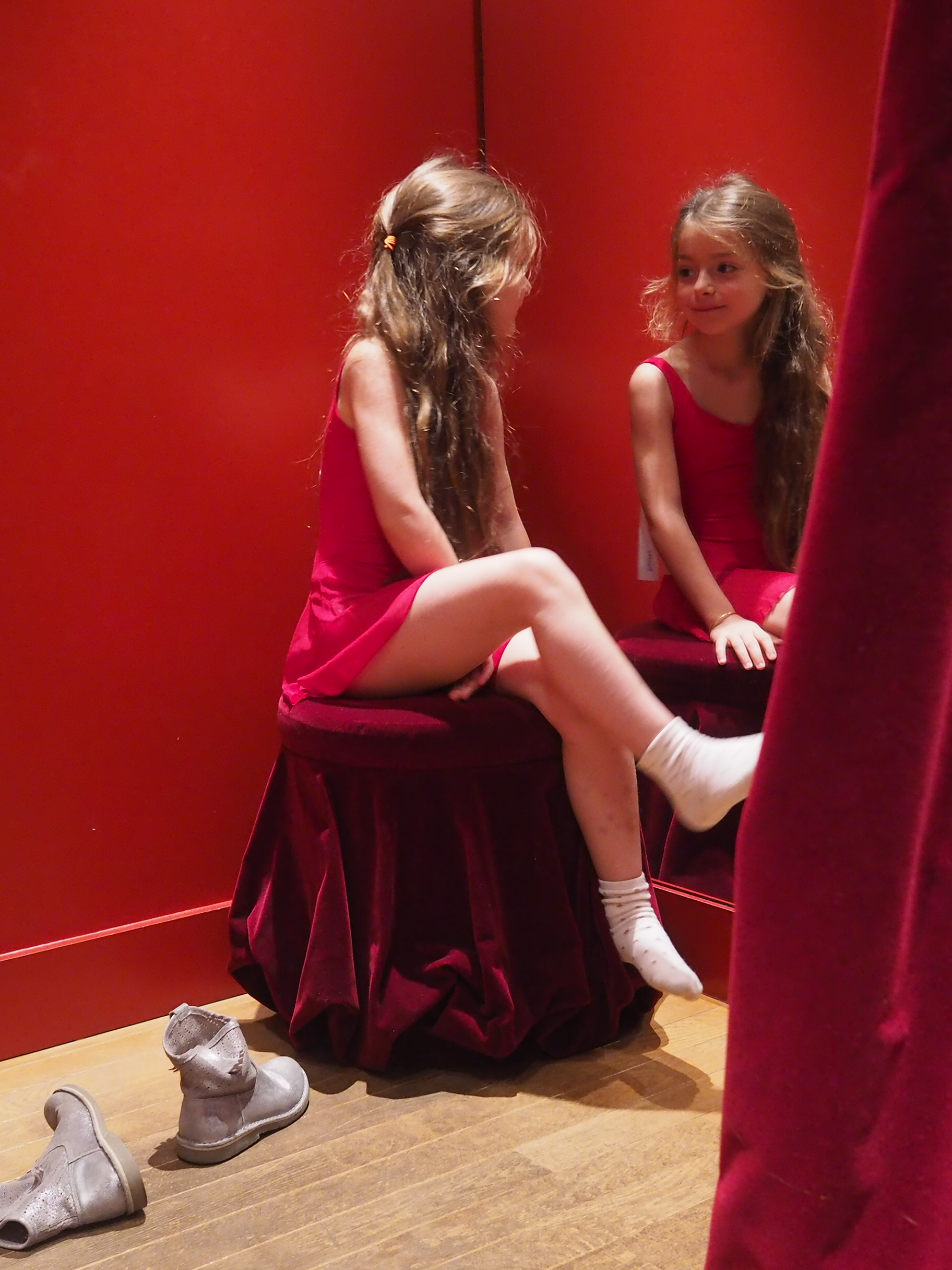 On a fabriqué des souvenirs chez Repetto. Rue de la Paix, comme au Monopoly. Je l’ai laissée choisir la couleur de son justau et jamais je n’aurai parié sur ce rouge-là et pourtant il lui va à ravir. Des rideaux lourds de velours à la grâce d’un essayage de chaussons, je ne sais ce qu’elle gardera de notre virée shopping mais tant que je peux le faire, je le ferai pour elle. Petite ballerine jolie.