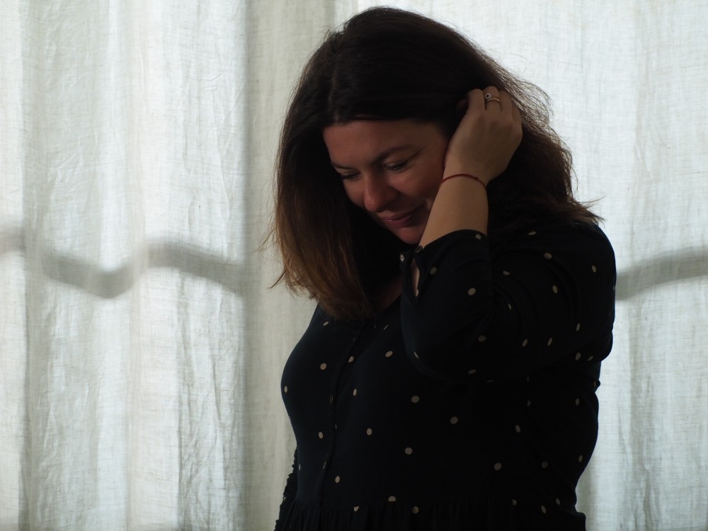 Je suis un peu fâchée avec mon corps, depuis l’arrivée de mon petit deuxième, parce qu’il m’a laissé comme mon ainée, une cicatrice sur le bas ventre (« une petite porte », comme elle me dit si bien) ; et puis ma poitrine n’a pas réussi à allaiter comme il fallait ; et puis, et puis … J’ai aussi envie de le rhabiller de dentelles et de douceurs, mais je n’ose même pas reprendre mes mesures (elles ne doivent pas avoir beaucoup changer, mais il faut quand même les regarder).