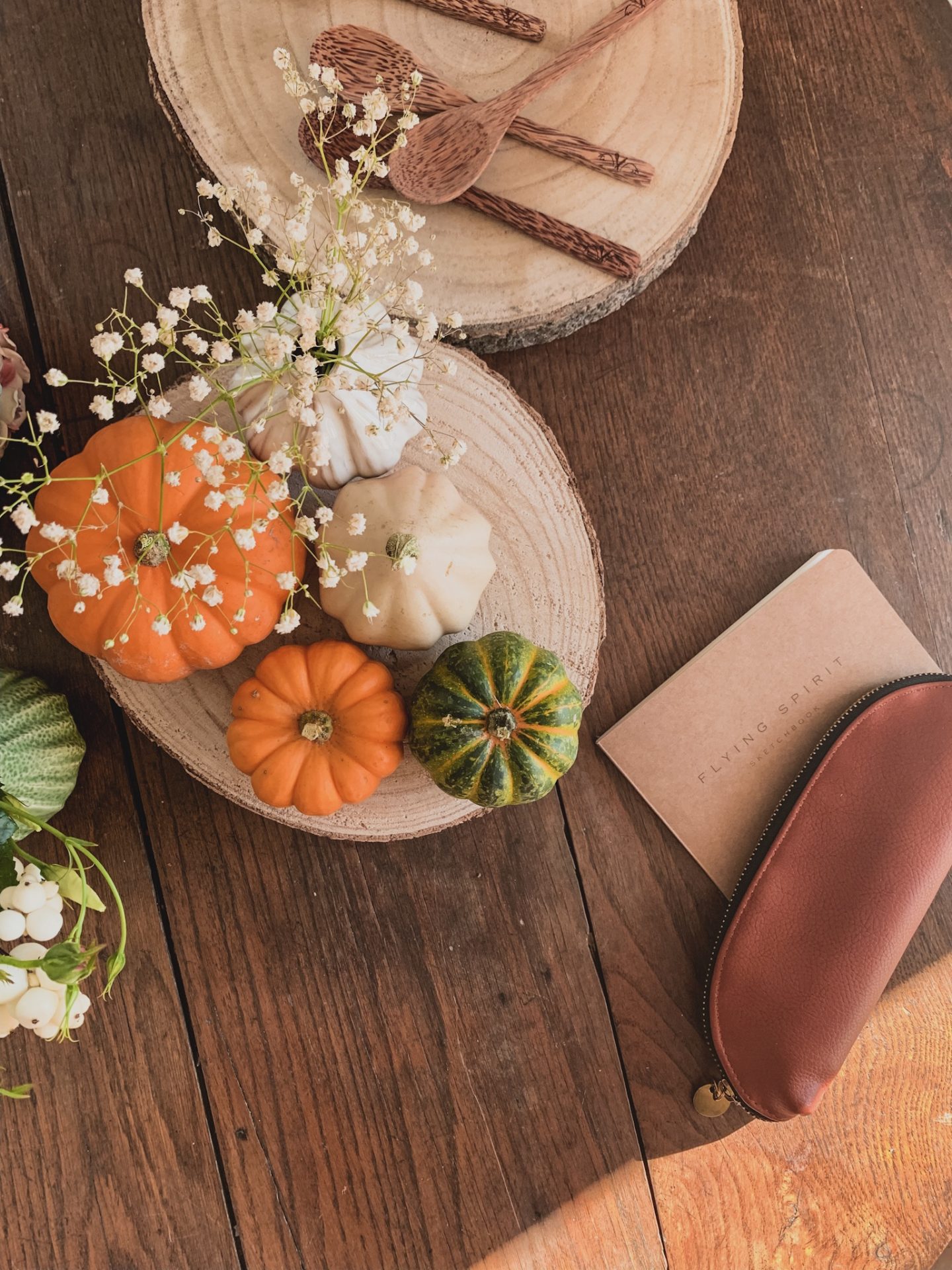 L’automne est bel et bien là, j’aime aller acheter quelques petites courges pour poser ça et là sur la table. Nous avons planté  des bulbes de tulipe aussi mais il en reste encore plein… et j’ai cassé la seule binette que j’avais. Ça ne s’invente pas un truc pareil! Shopping outil de jardin en vue.