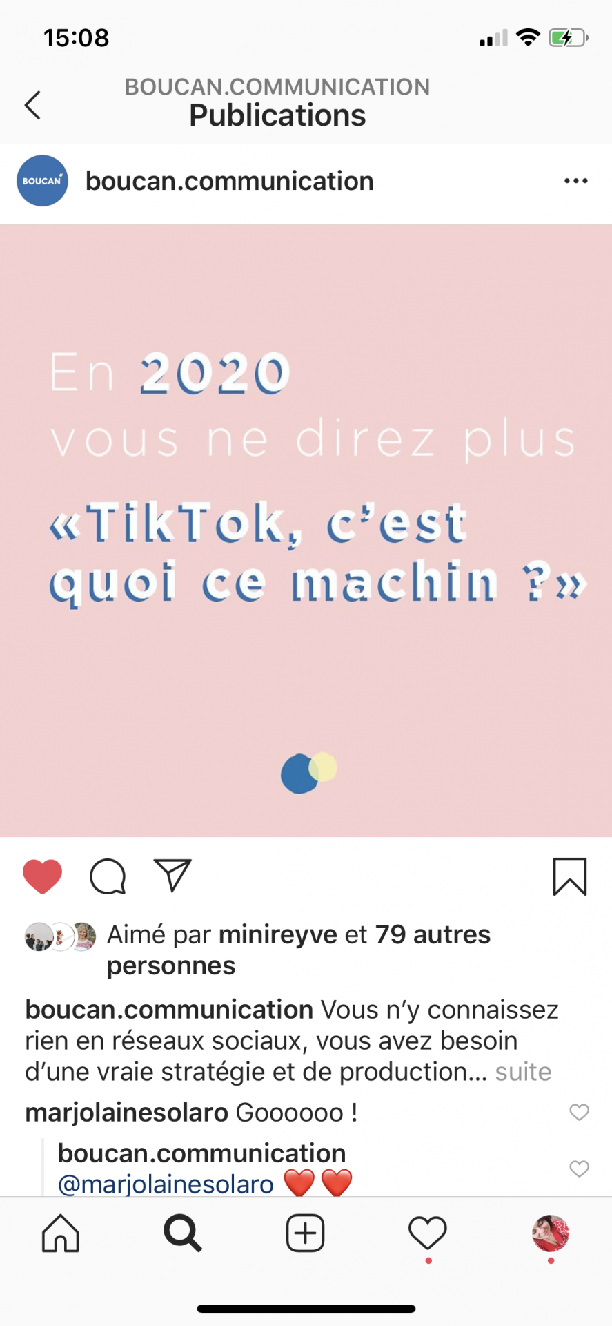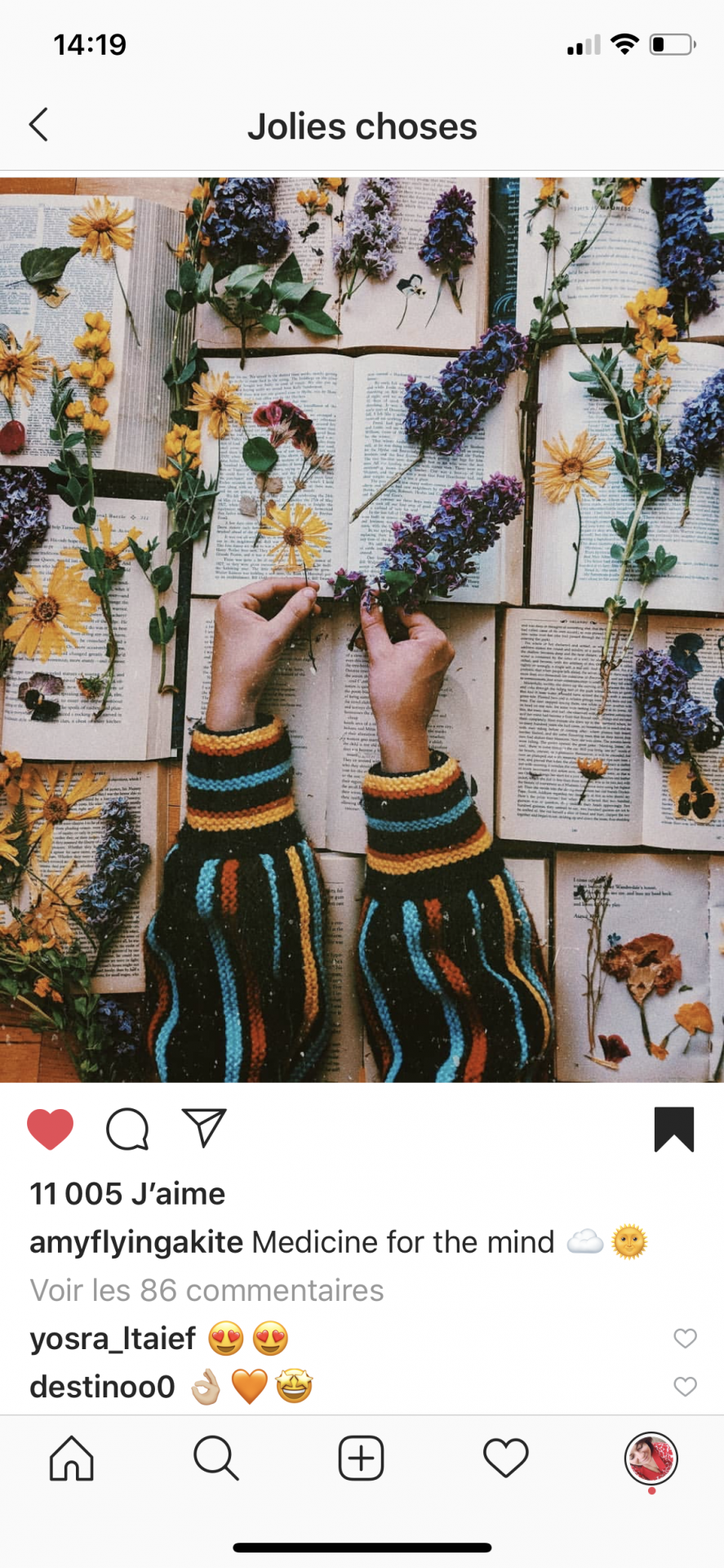 Je me sers de plus en plus de la fonction « favoris » d’insta. De plus en plus ce n’est pas vraiment le mot mais disons que je range et organise mieux ce que j’aime sur Instagram et ça croyez moi c’est énorme pour moi, on peut dire que déjà au 10 janvier j’ai réussi moins année 2020! Pourvu que ça dure.