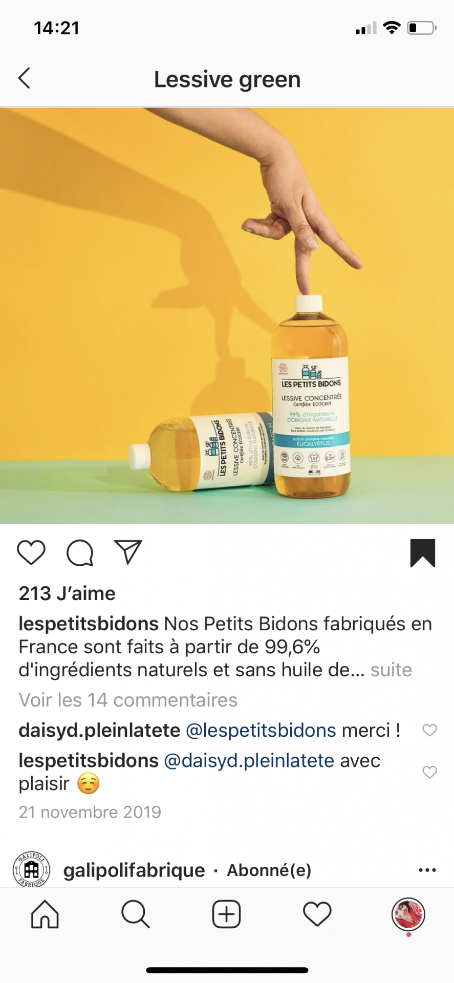 J’ai aimé le joli packaging, la transparence et la bonne idée de l’abonnement de @lespetitsbidons.