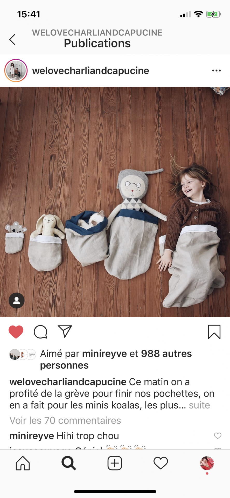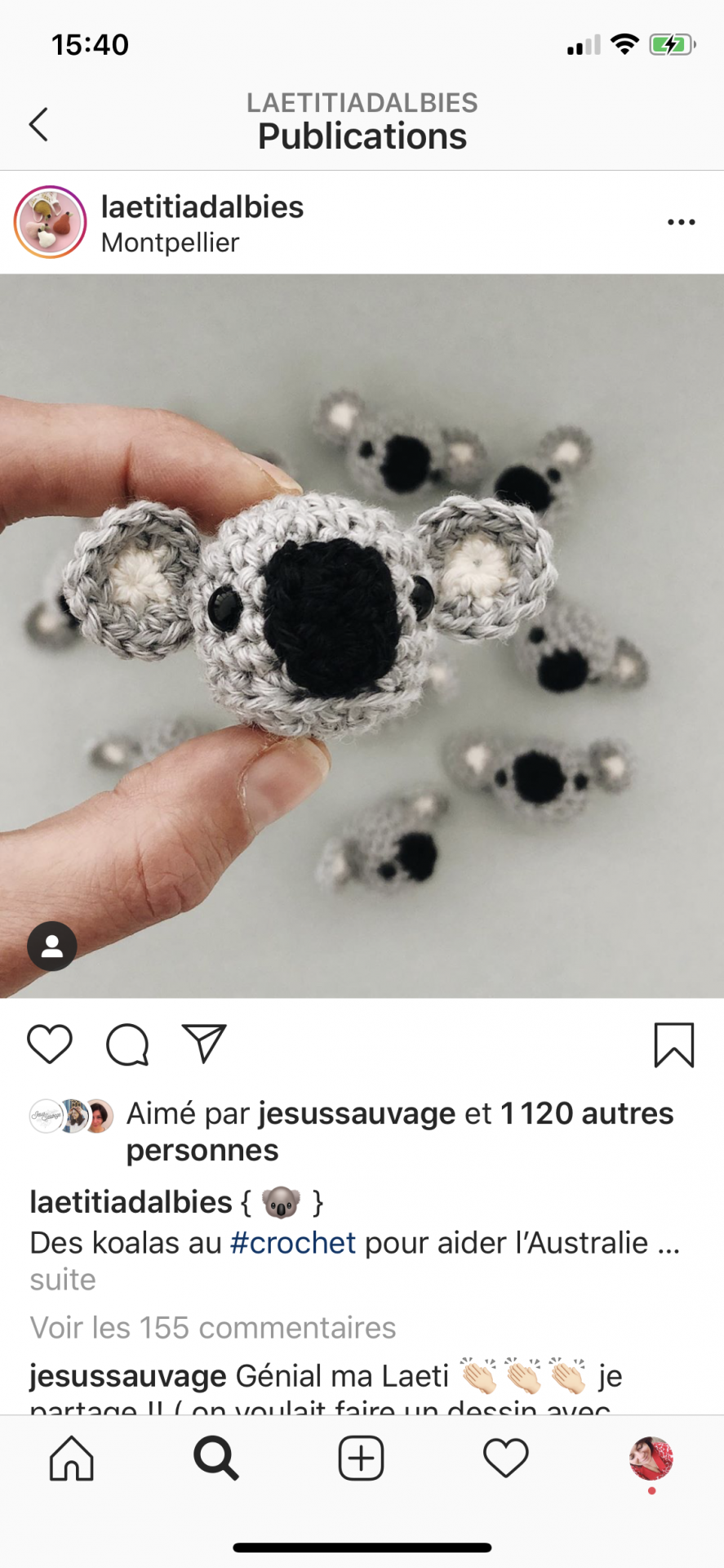 Et pour finir, j’ai été sensibles aux partages de @laetitiadalbies (son tuto de petit koala est en vente au profit d’une asso Australienne) @welovecharlietcapucine (non mais cette photo!!!) et à la super initiative de @etpuiscolette.